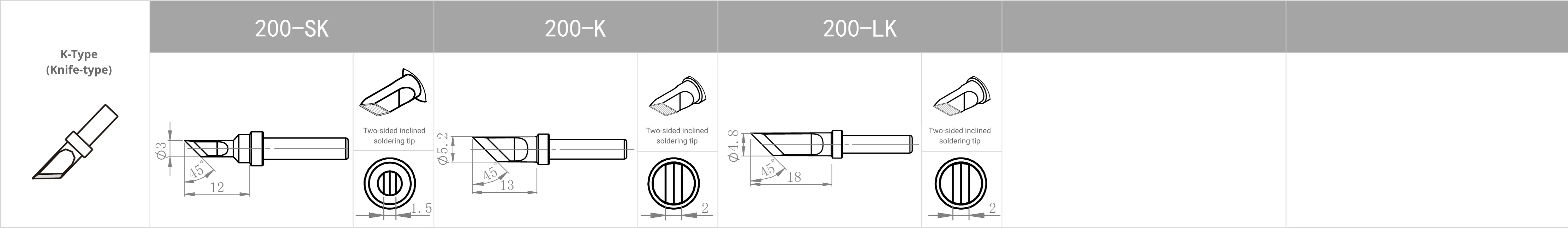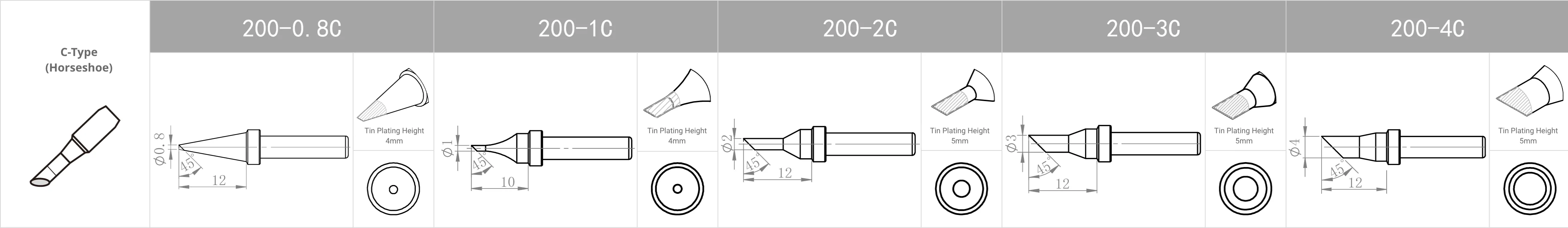Các model mũi hàn tiêu chuẩn dưới đây, có thể tùy chỉnh loại mũi hàn khác nhau theo từng ứng dụng.