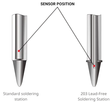 • Thiết kế tách rời giữa mũi hàn, cảm biến và lõi nhiệt