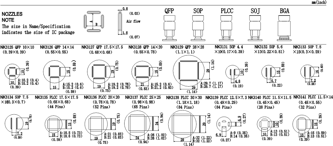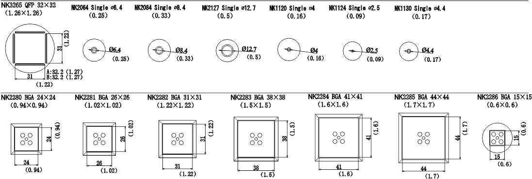 | Đầu khò tiêu chuẩn | NK1130 (φ4.4) / NK2064 (φ6.4) / NK2084 (φ8.4) |